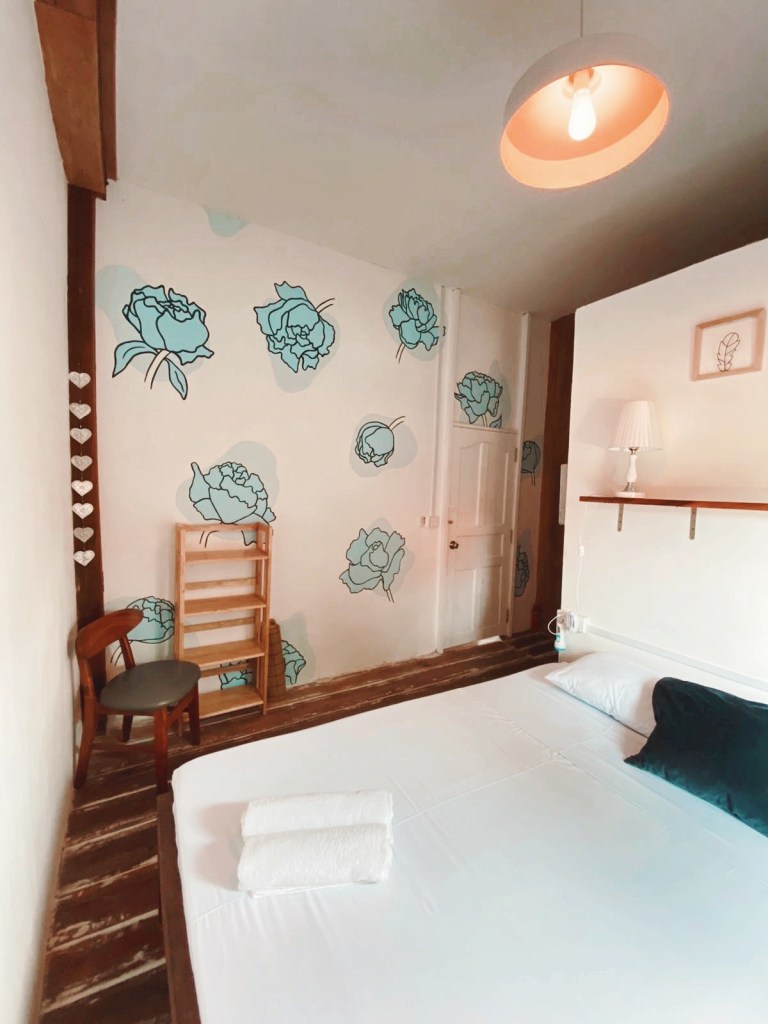 We have six cosy rooms available. Each room has its own flowery signature. They have been decorated with lots of love and eye for detail. All rooms have fans to give you a nice breeze at night. The showers give cold water, which is really nice and cools you down after a hot day in paradise. If you are in need of a hot shower you can use the one downstairs.